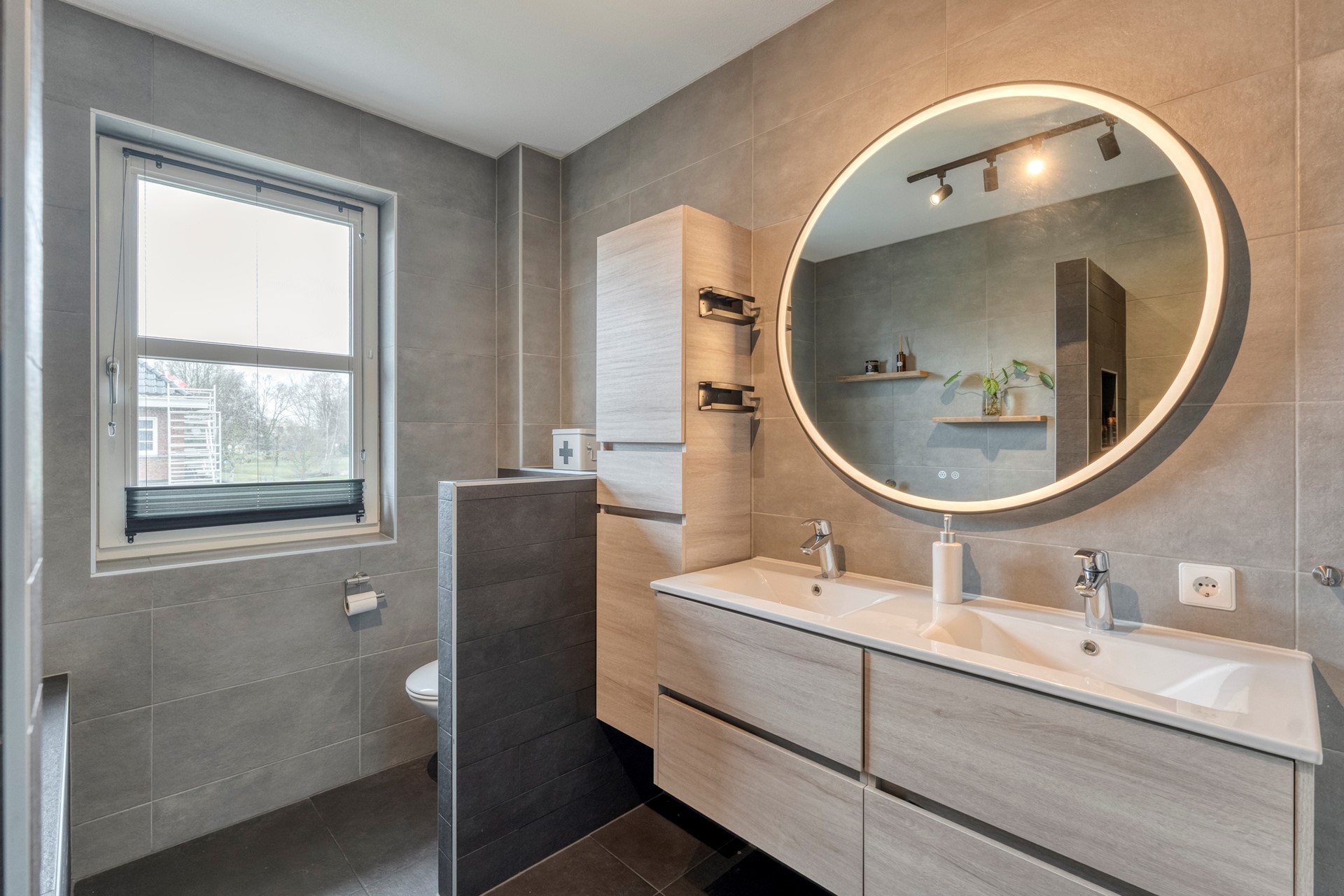 Gelegen aan de rand van het pittoreske dorp en omgeven door groen, vind je deze twee-onder-een-kapwoning uit 2014. De locatie is ronduit aantrekkelijk: naast de woning loopt namelijk een pad dat rechtstreeks toegang geeft tot het aangrenzende park. Ideaal voor een wandeling na het eten, met kinderen ravotten of even bijkletsen met de buren. Zo’n ligging, op de grens van beschutting én vrijheid, kom je zelden tegen.