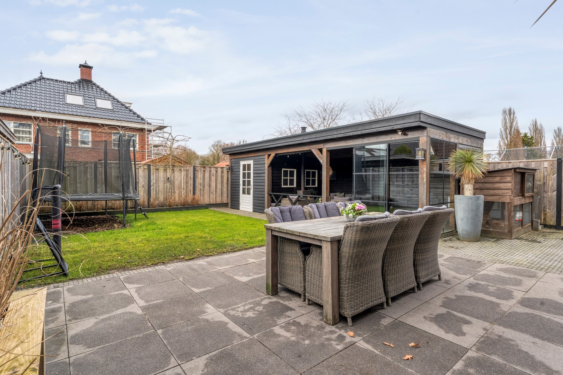 Open vanaf het voorjaar de deur naar buiten en beleef het echte tuingevoel. Niet alleen beschik je over een ruime achtertuin, ook kun je in het fraaie tuinhuis al vroeg in het voorjaar genieten van een kopje koffie of op lange zomeravonden tot laat buiten zitten. Wie wil hier nou niet bbq'en met familie of vrienden, terwijl de kinderen veilig spelen in het gras?