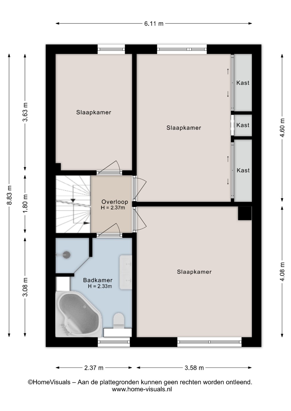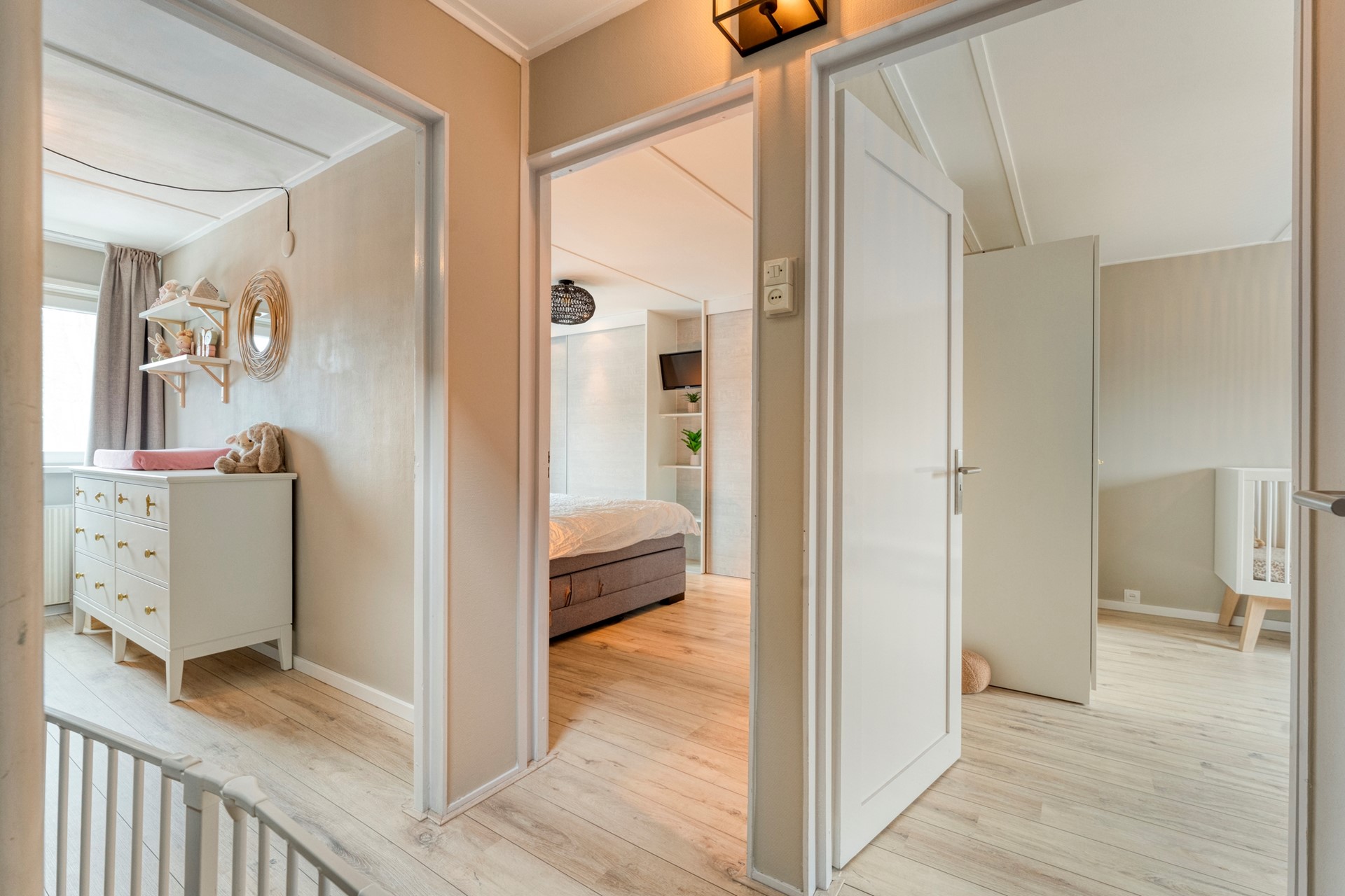 Verdieping: overloop, badkamer en 3 slaapkamers.