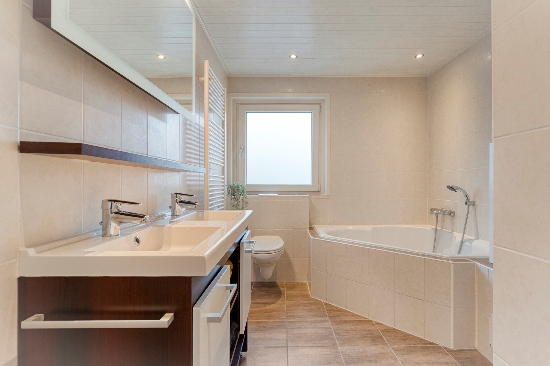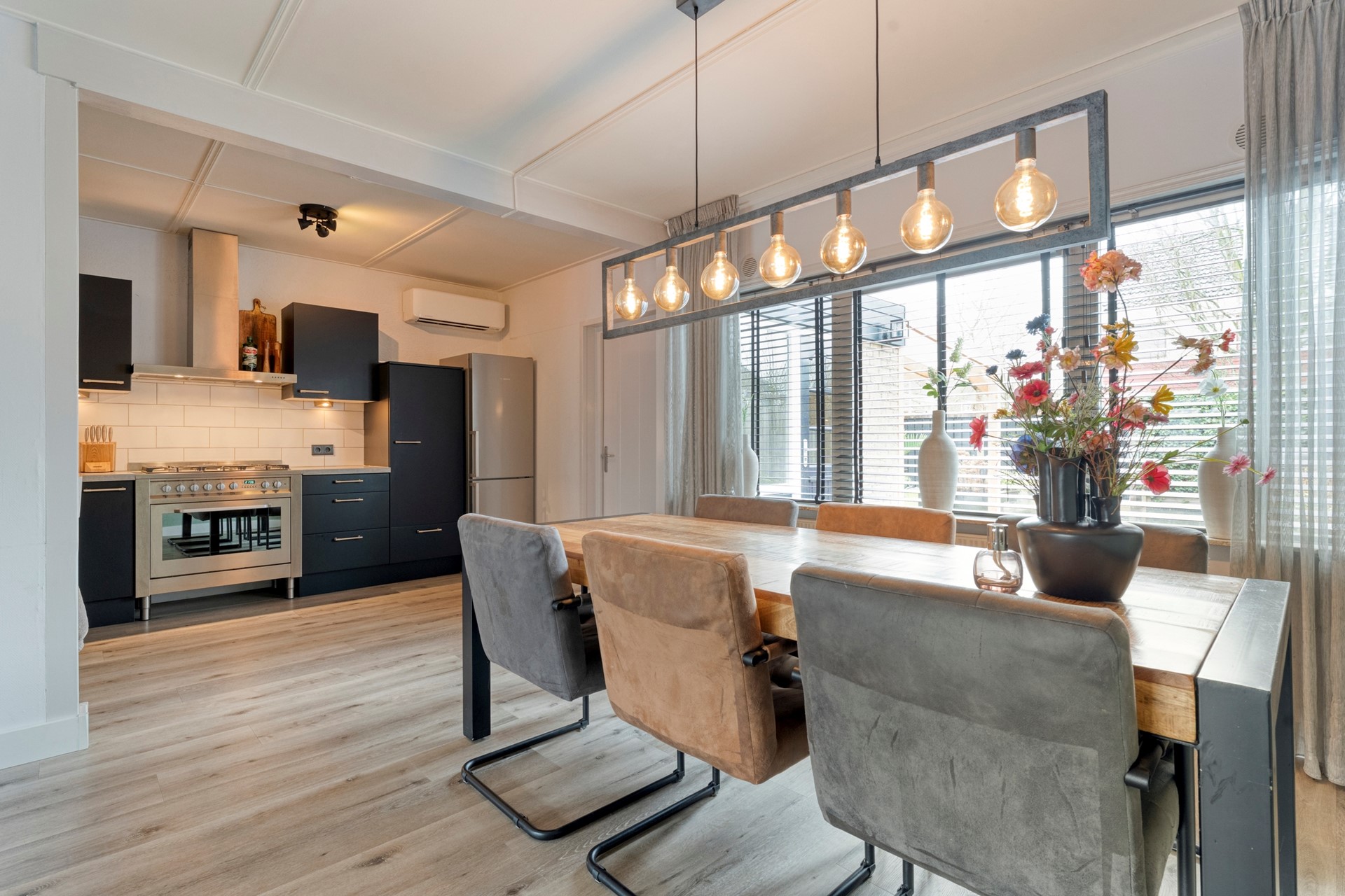 We noemen het liever gemoedelijk dan gewoon riant, maar eerlijk is eerlijk: binnen én buiten is er ruimte in overvloed. Of je nu uitgebreid wilt tafelen met vrienden, de kinderen een eigen speelhoekje wilt geven of gewoon graag leeft zonder elkaar in de weg te lopen – hier kan 't allemaal. De vertrekken zijn verrassend ruim opgezet met grote ramen die een fijne lichtinval geven. Echt zo’n huis waar je meteen plannen voor de toekomst visualiseert.