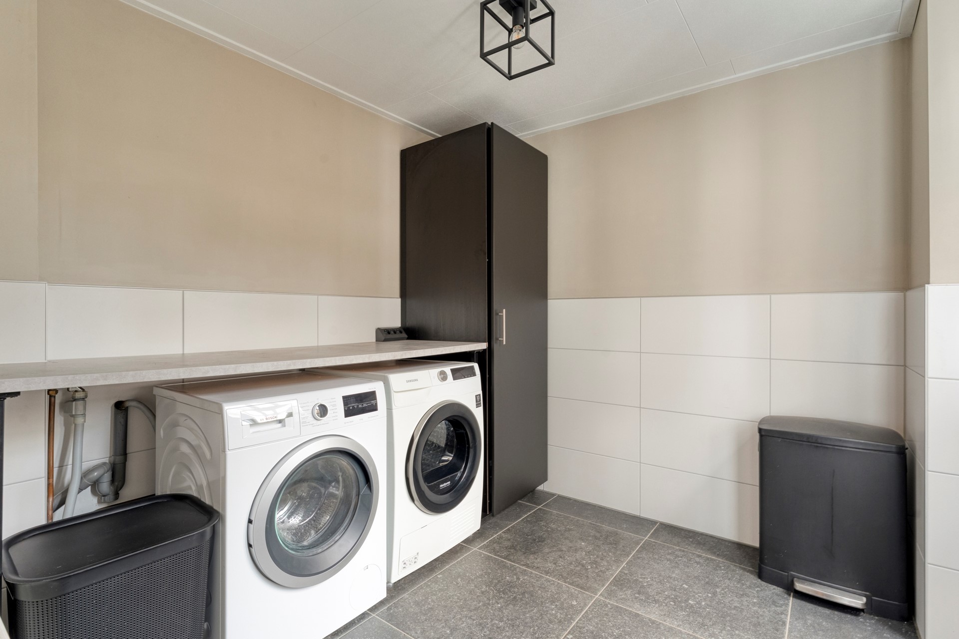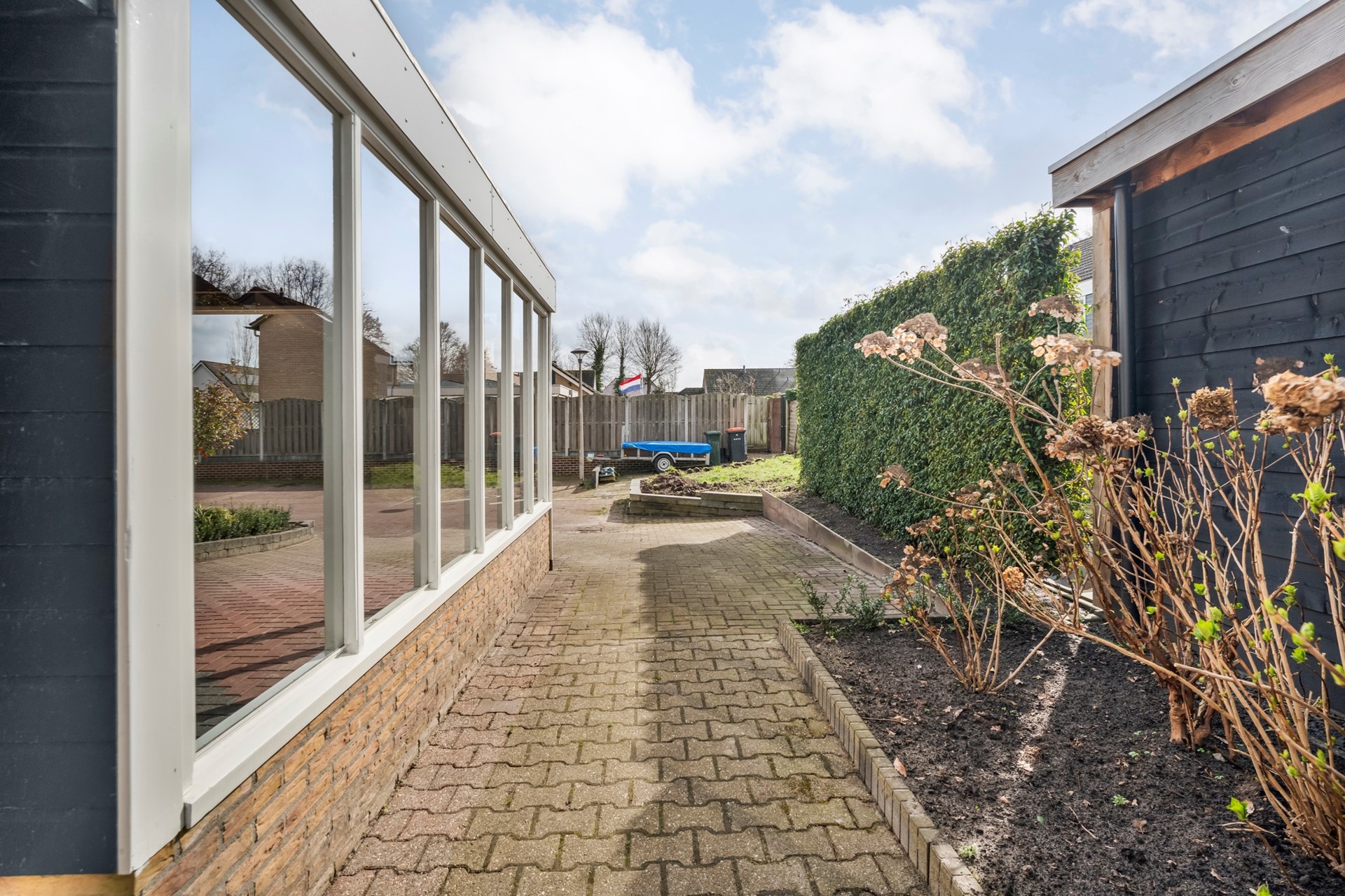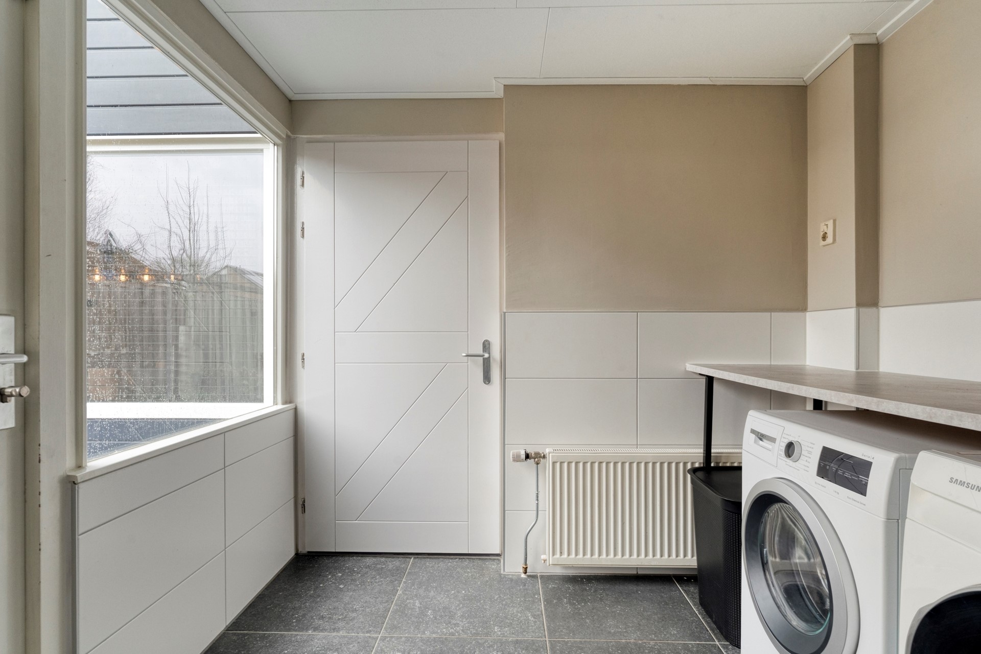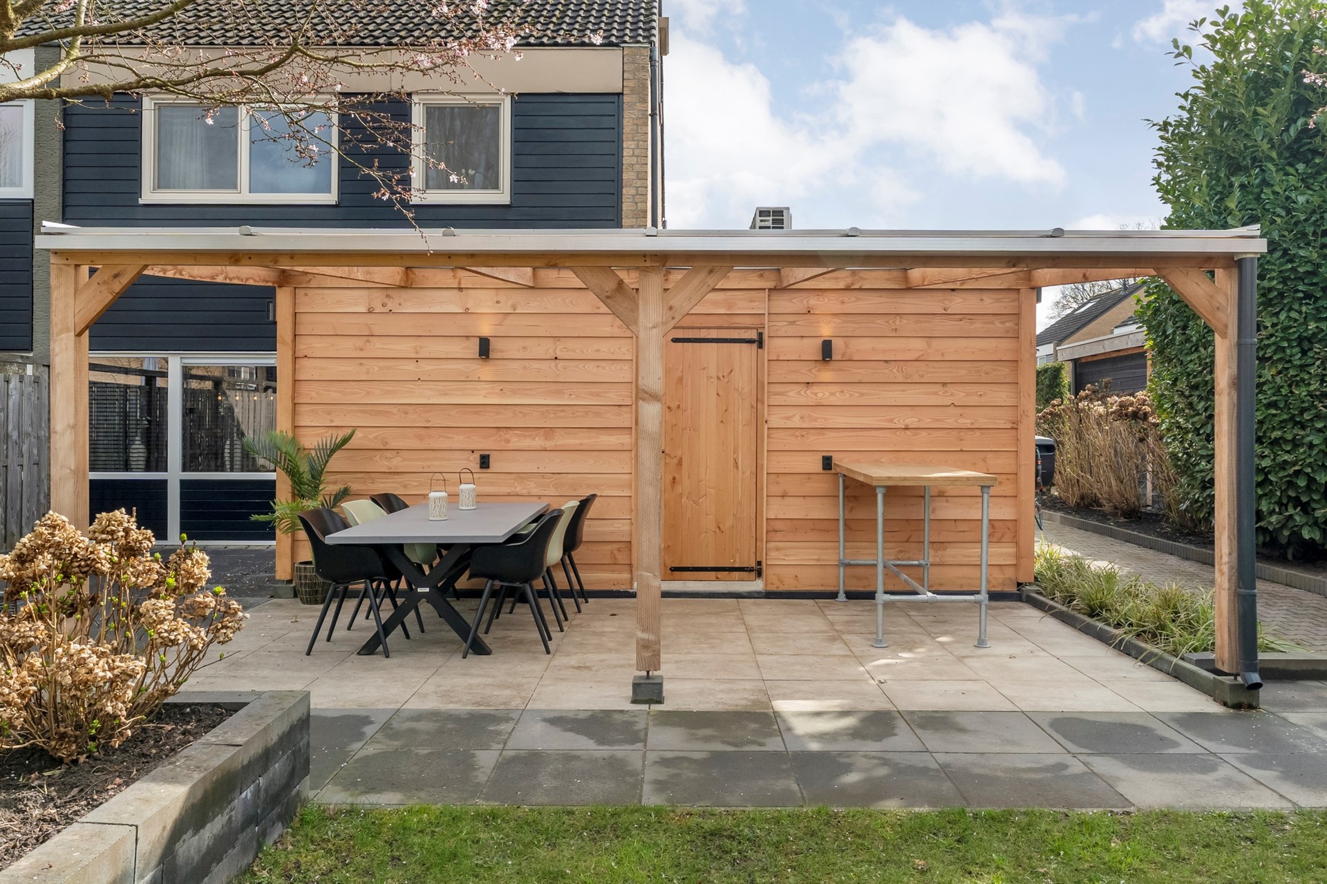 Grote pluspunten? Wie kent het niet: altijd gedoe met parkeren, te weinig bergruimte of elke winter een natte auto. Nou, daar hoef je je hier dus geen zorgen over te maken! Deze woning beschikt namelijk over een royale garage/berging met meer dan voldoende plek voor fietsen, gereedschap, voorraad én hobby’s. De carport zorgt ervoor dat je auto beschermd staat, en gasten vinden een plekje aan de overkant.