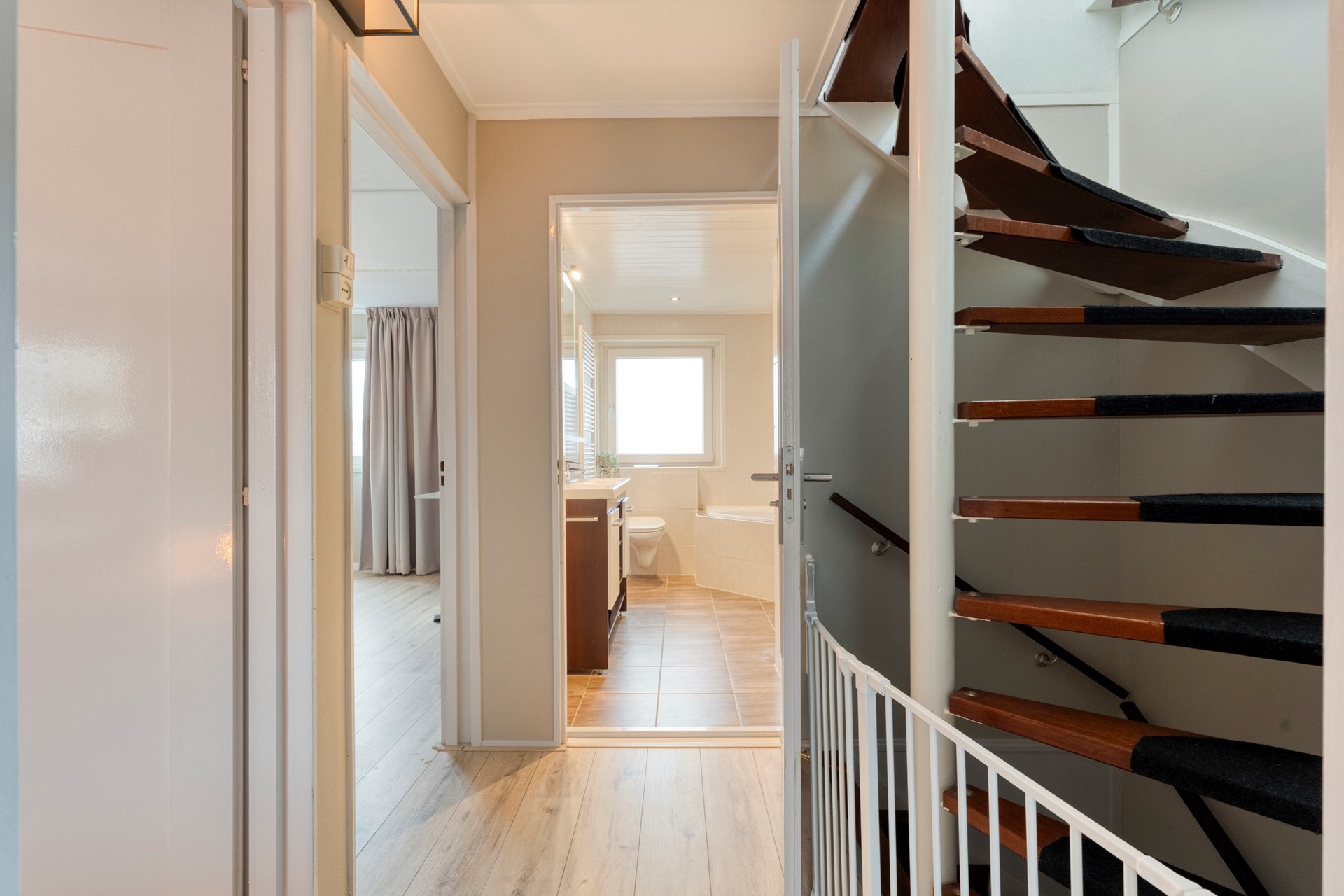 Zolderverdieping: via vaste trap naar overloop, kastruimte, 4e slaapkamer en bergruimte.