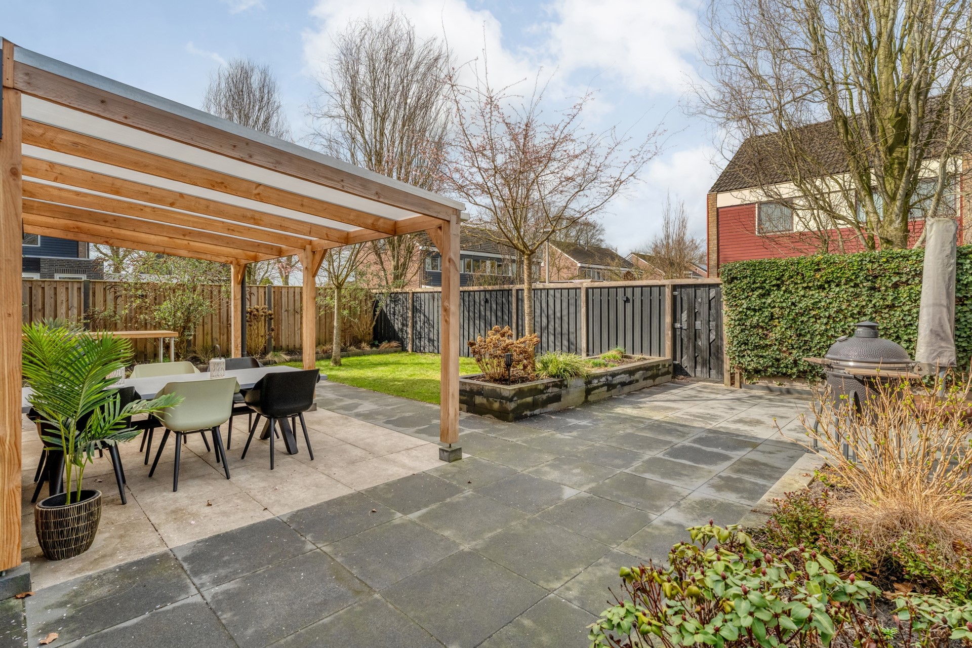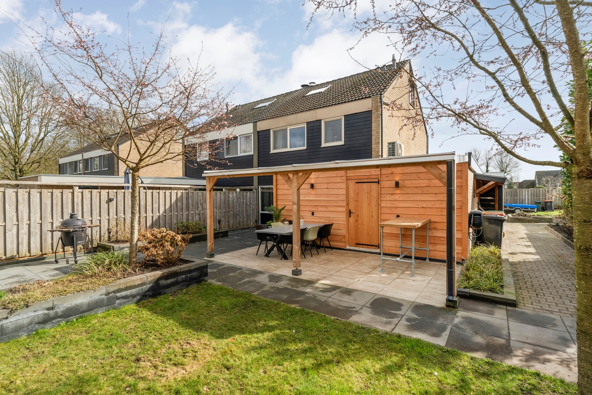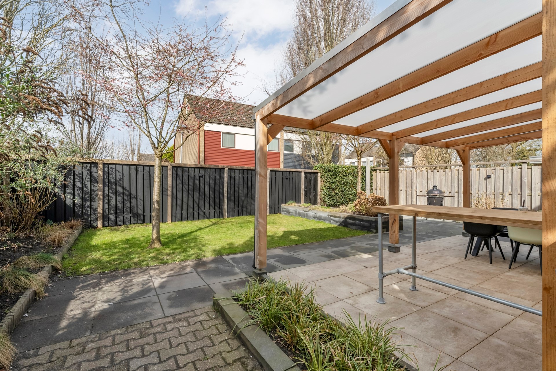 Met een perceel van maar liefst 353 vierkante meter kun je alle kanten op. Een ruime achtertuin waar je zwoele zomerdagen besteed onder de overkapping, terwijl de barbecue langzaam aan gaat en de kinderen zich uitleven op het gras. Tegelijk heeft de tuin een frisse uitstraling; alles ziet er verzorgd uit en nodigt direct uit om samen het buitenleven te vieren. Laat die lange zomeravonden maar komen!