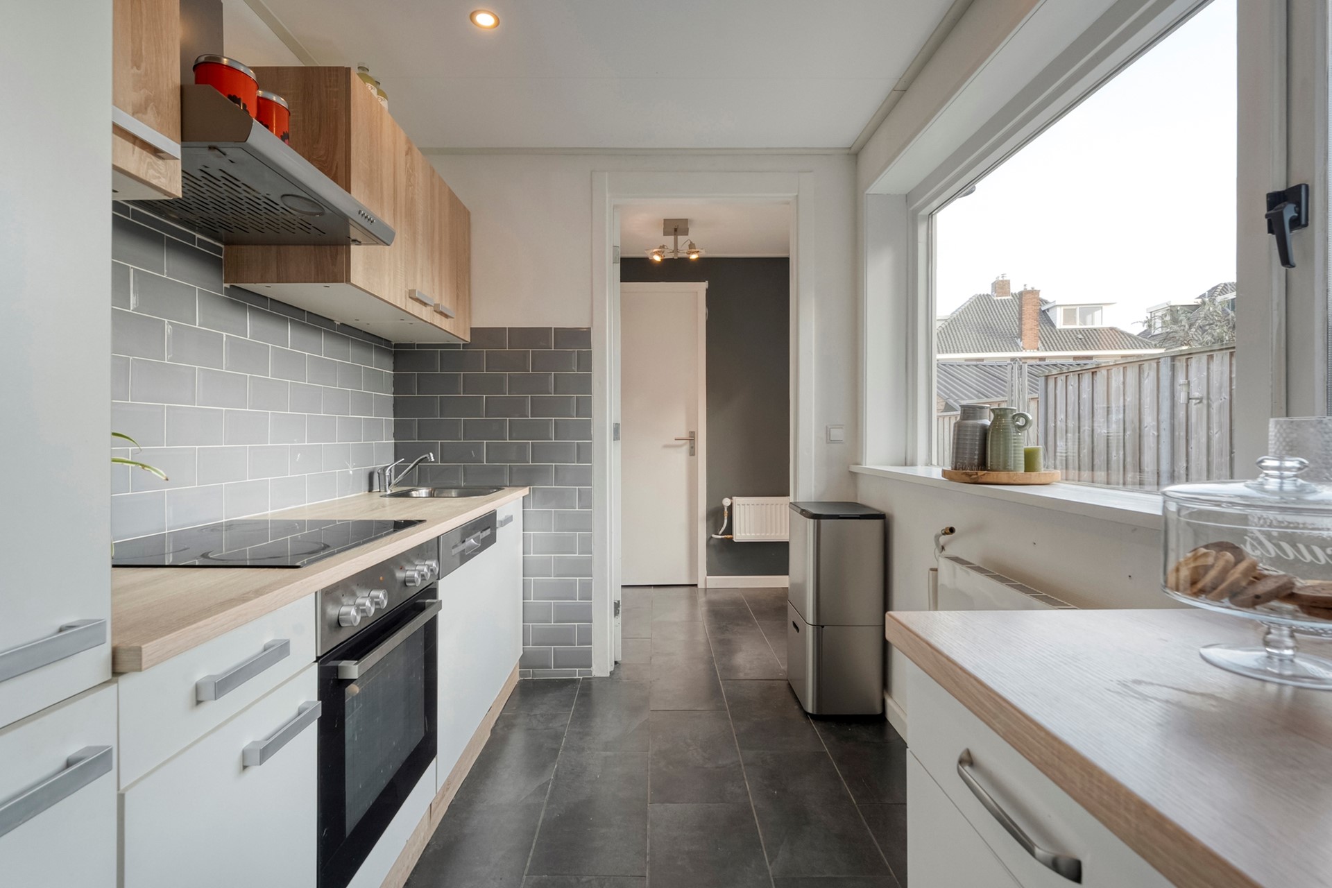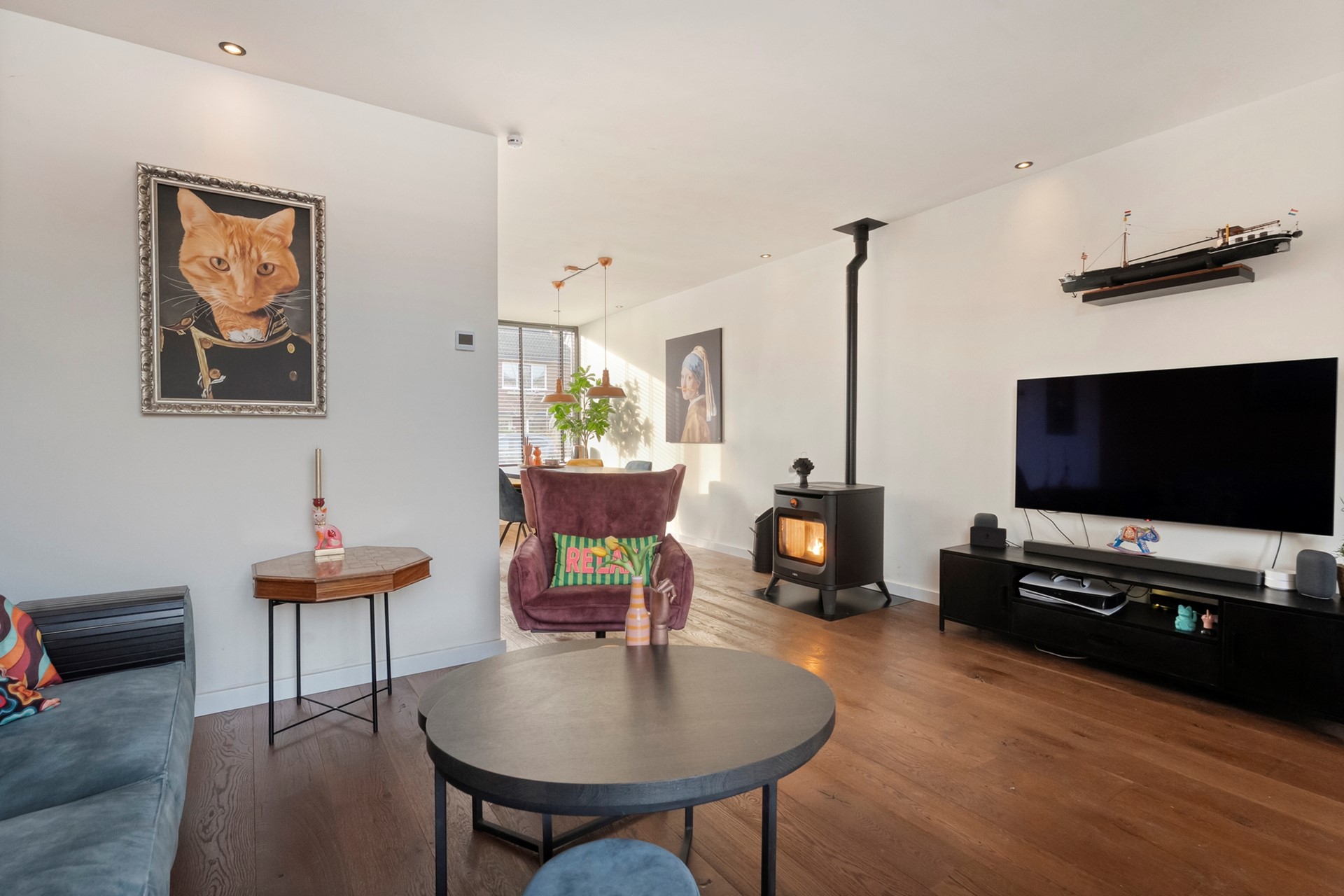 Je merkt het meteen bij binnenkomst: ruimte genoeg! De woonkamer is licht, luchtig en nodigt uit om met vrienden lang te tafelen of met je gezin knus op de bank te ploffen. Dankzij de grote ramen valt het daglicht lekker naar binnen, waardoor het altijd fijn thuiskomen is. De keuken is praktisch, met genoeg plek voor al je culinaire experimenten – al zie je jezelf misschien zelfs al wel dromen over een open keuken in de toekomst.