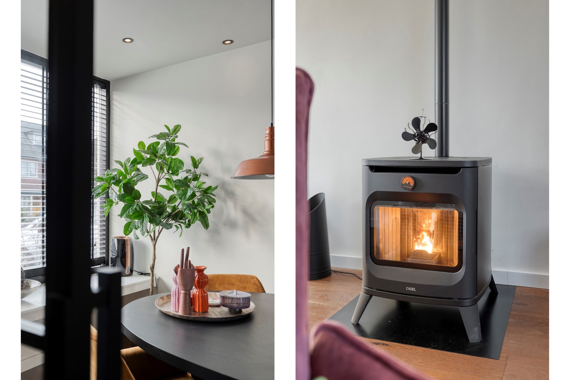 - Verwarming middels Airco en pelletkachel
