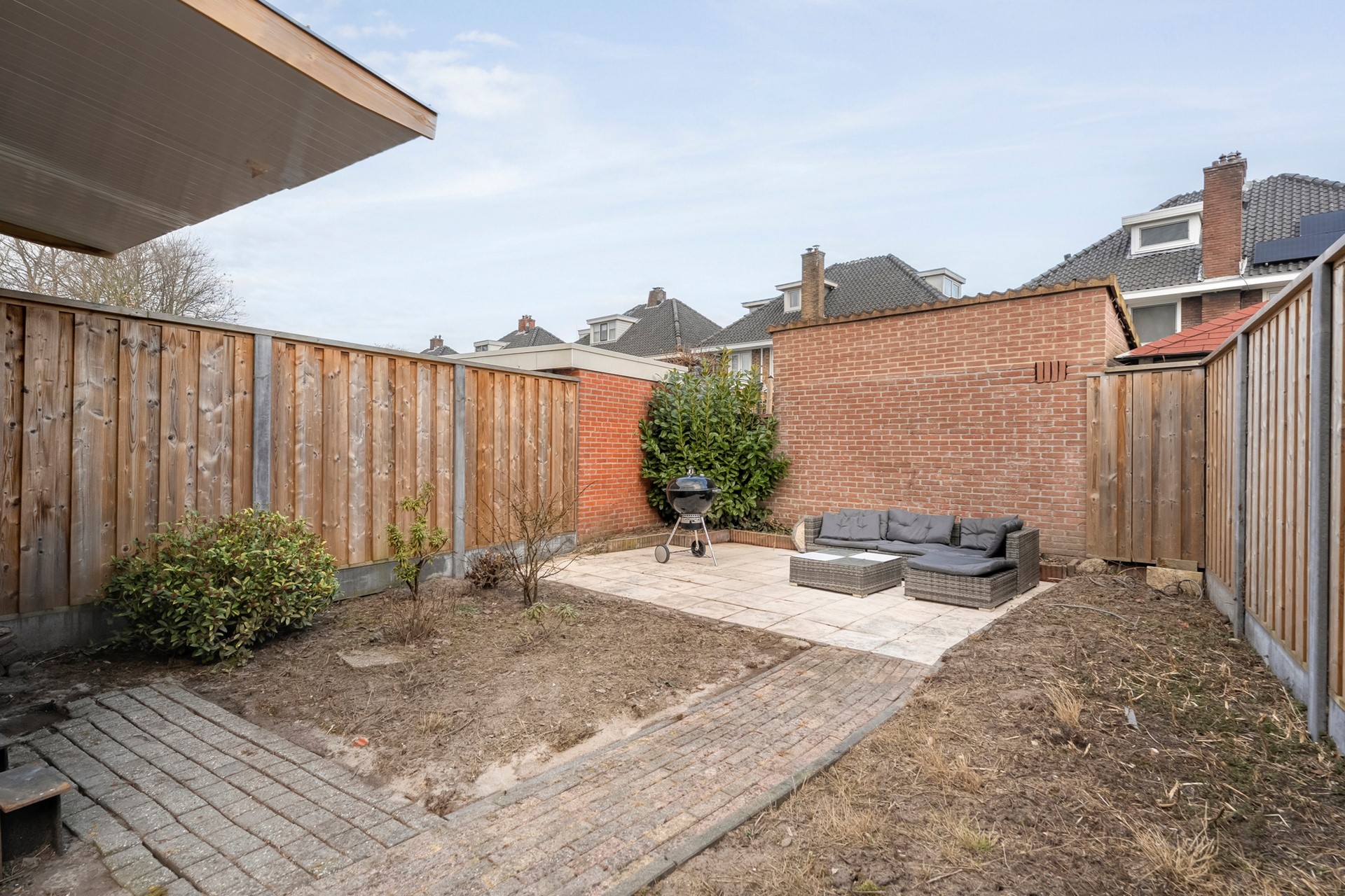 De achtertuin, met een oppervlakte van maar liefst 80 m², wacht nog op jouw groene vingers. Helemaal vrij om hier je eigen paradijsje te creëren. Of je nu zin hebt in een strakke loungehoek, een gezellige veranda of een speelplek voor de kids – jouw ideeën maken de tuin compleet. Lekker barbecueën of zonnen in je eigen oase: het kan hier allemaal.